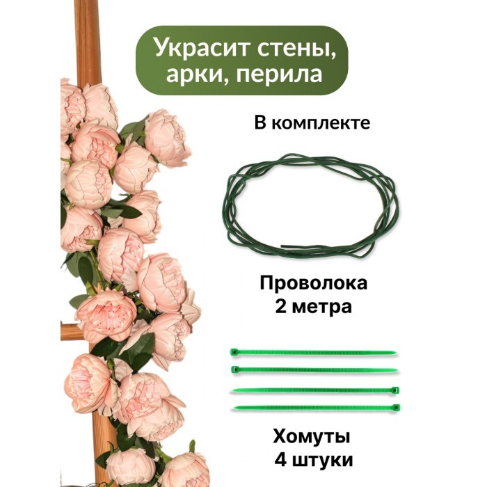 Цветы искуственные Пионы каскадные (37 штук, 120 см, цветок 10 см) розовый 265451