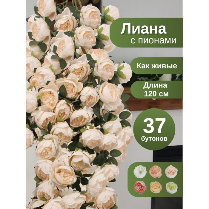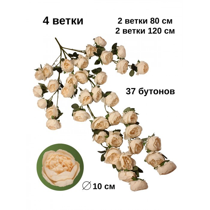 Цветы искуственные Пионы каскадные (37 штук, 120 см, цветок 10 см) шампань 265901