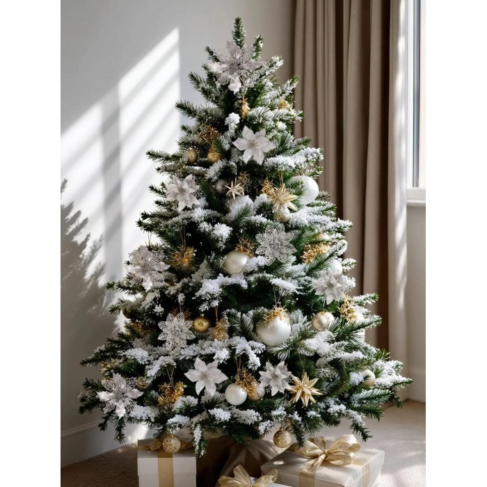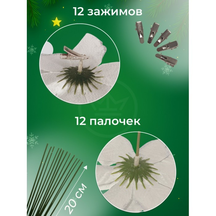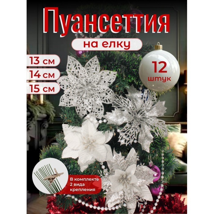 Набор Цветы Пуансеттия (12 штук - 13/14/15 см + проволока+зажимы) серебро 266219