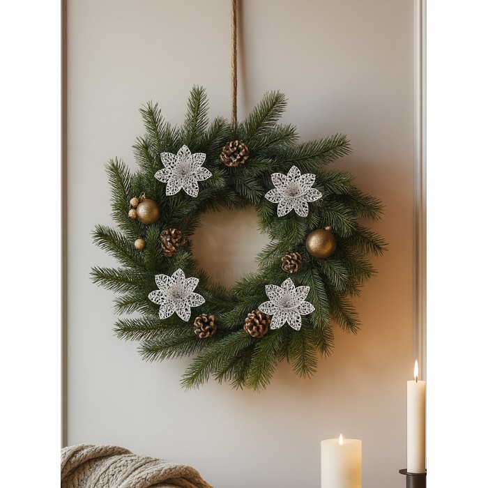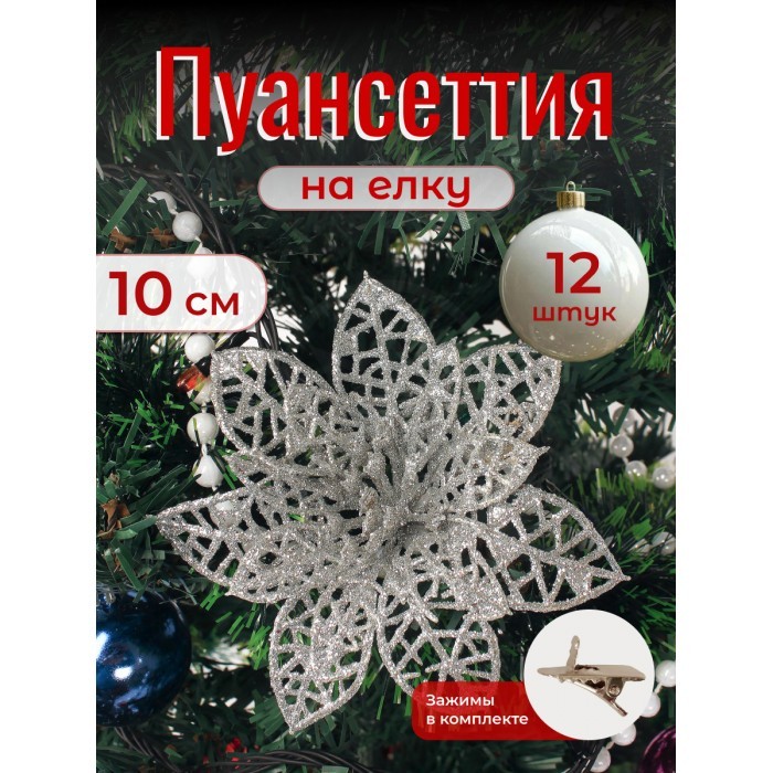 Набор Цветы Пуансеттия (12 штук - 10 см+зажимы 12шт) серебро 266223