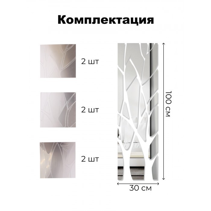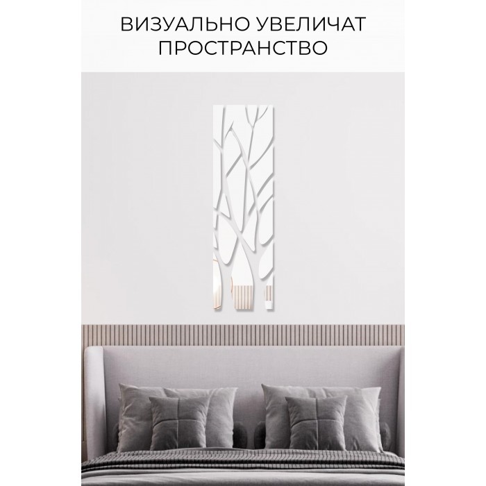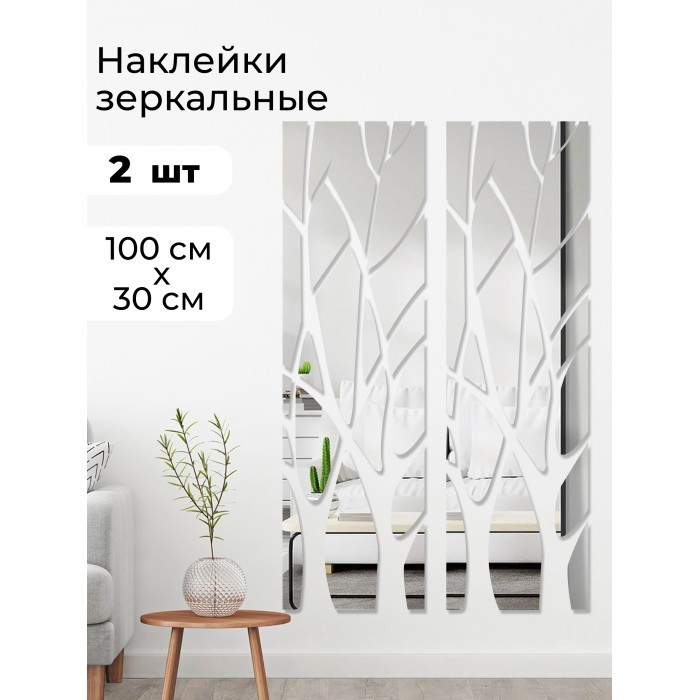 Интерьерные зеркальные наклейки Дерево 2шт (120*28см- 2 шт. трафарет ) серебро 265532