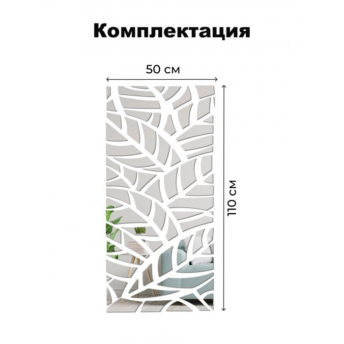 Интерьерные зеркальные наклейки Листья (110*50см ) серебро 265984