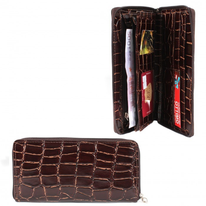 Портмоне женское Premier-S-39 н/к, 4 отд, 9 карм, коричневый крокодил крупный (3) 203832